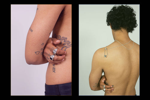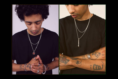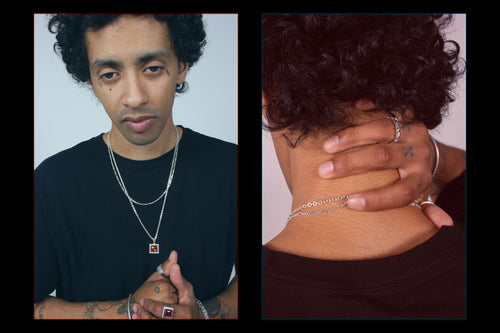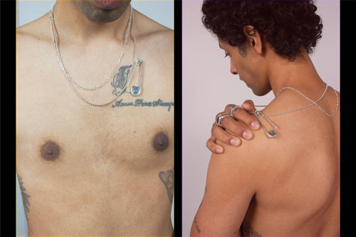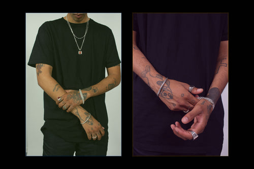 Shot in Washington DC by friend and frequent collaborator Kevin Wilson. We focus on the sterling silver pieces in the most recent AW19 release. Utilizing chains in multiple lengths on the neck and wrists to show the versatility when experimenting with styling. Doubling rings on top of one another and layering bangles while still not looking like it’s too much. Key items featured are the Flat, Rolo and Figaro chains in sterling silver alongside the Buick ring, Star ring, Iron cross bangle and Safety Pin.