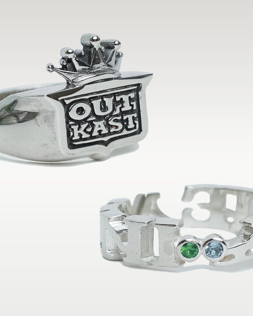 Outkast, the legendary hip-hop duo from Atlanta, Georgia, has been reshaping the sound and culture of music since 1992. From Atlanta’s streets to worldwide acclaim, Big Boi and André 3000 redefined the genre with groundbreaking albums like Southernplayalisticadillacmuzik, Aquemini, Stankonia & Speakerboxxx/The Love Below. Drawing inspiration from these albums for their boundary-pushing style and vision, we designed two rings: the Aquemini Ring and Logo Signet.