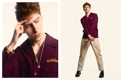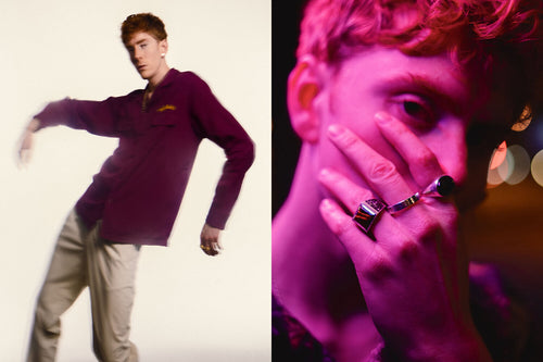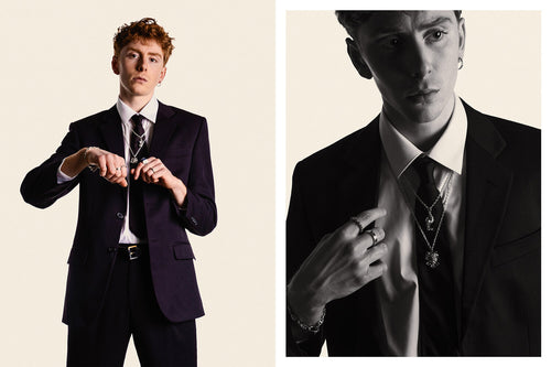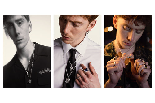 Drawing inspiration from Robert Crumb and Ralph Bakshi, this seasons collection features some unique designs. Notable pieces include Fritz the Cat themed pendants, nude coins and bracelets alongside classic art deco ring shapes. The Midnight ring features a vibrant blue sapphire stone while there are more playful styles like the Cowboy Soundboy ring, Nevermind earrings, Rosary and Laugh now cry later chains.