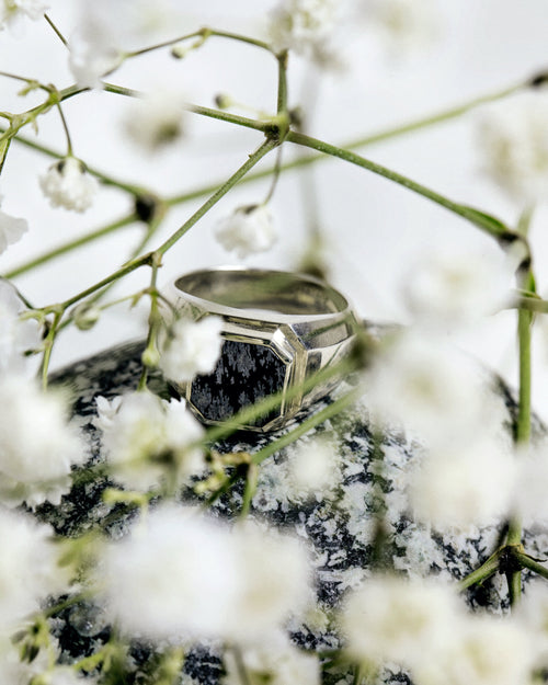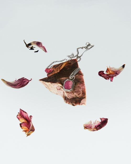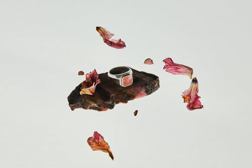 Our inaugural collaboration with W+H features a series of classic signet rings and curb chain pendants with two unique stone accents that speak to elements of the wings+horns foundation. Flower Stone is native to Vancouver Island and parts of Japan, symbolizing harmony, change, and progress. Rhodonite, a mineral stone found in Northern BC, represents the constant balance of our ties to the past and present, an overarching ethos in the way we design.