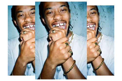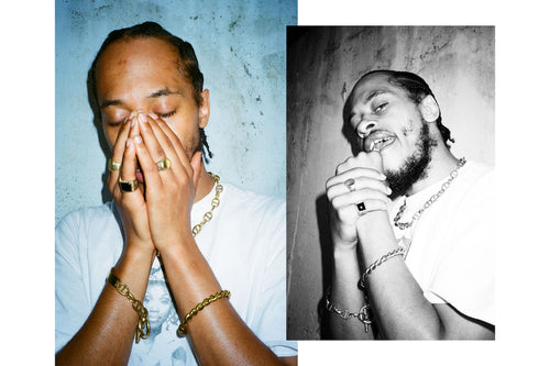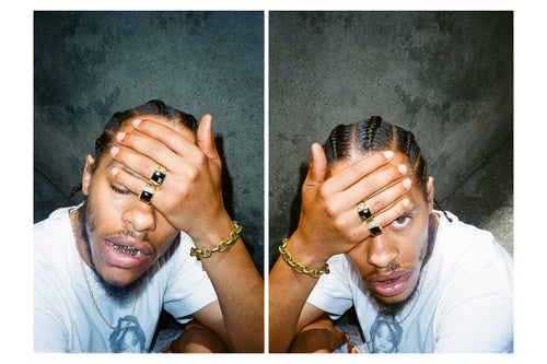 We met up with Pink Siifu last week in NYC to shoot a small summer editorial and highlight him on the site. Collaborating with artists like Mndsgn and Liv.e, Siifu’s laid back sound is low-fi sun drenched neo-soul meets DJ Screw. Ohio born Livingston Matthews aka Pink Siifu wears a selection of brass rings, chains and bracelets while embracing the New York summer. Shot on Spring Street by Hugo Mendoza we are pleased to present the Siifu Summer editorial.