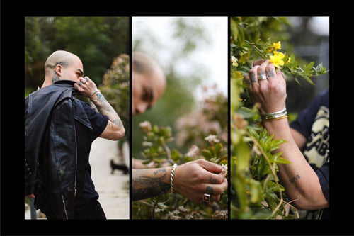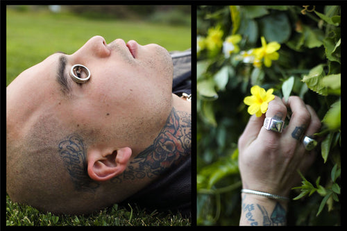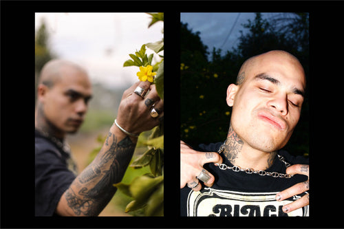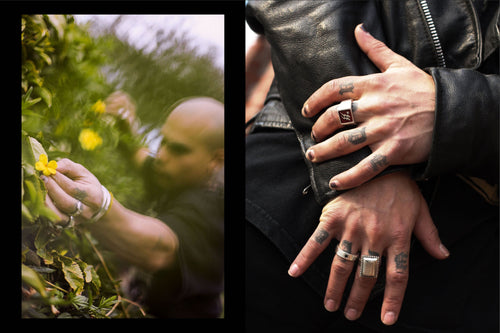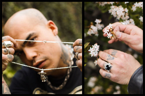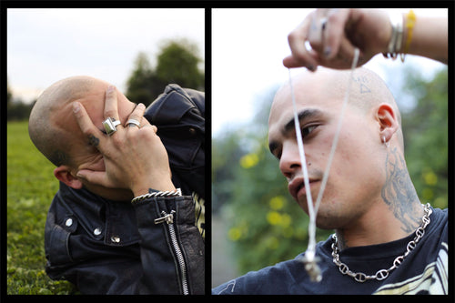 Enlisting the musical artist G h ø s t (GAZI, A.CHAL) to model the selection, this most recent offering features updated styles of our silver 925/brass rings, chains, pendants and bangles. Complimenting the collection is the flight satin Cowboy hat and other notable pieces include our Cowboy Pendant,House Bangle and perennial favourite Collegiate Ring.