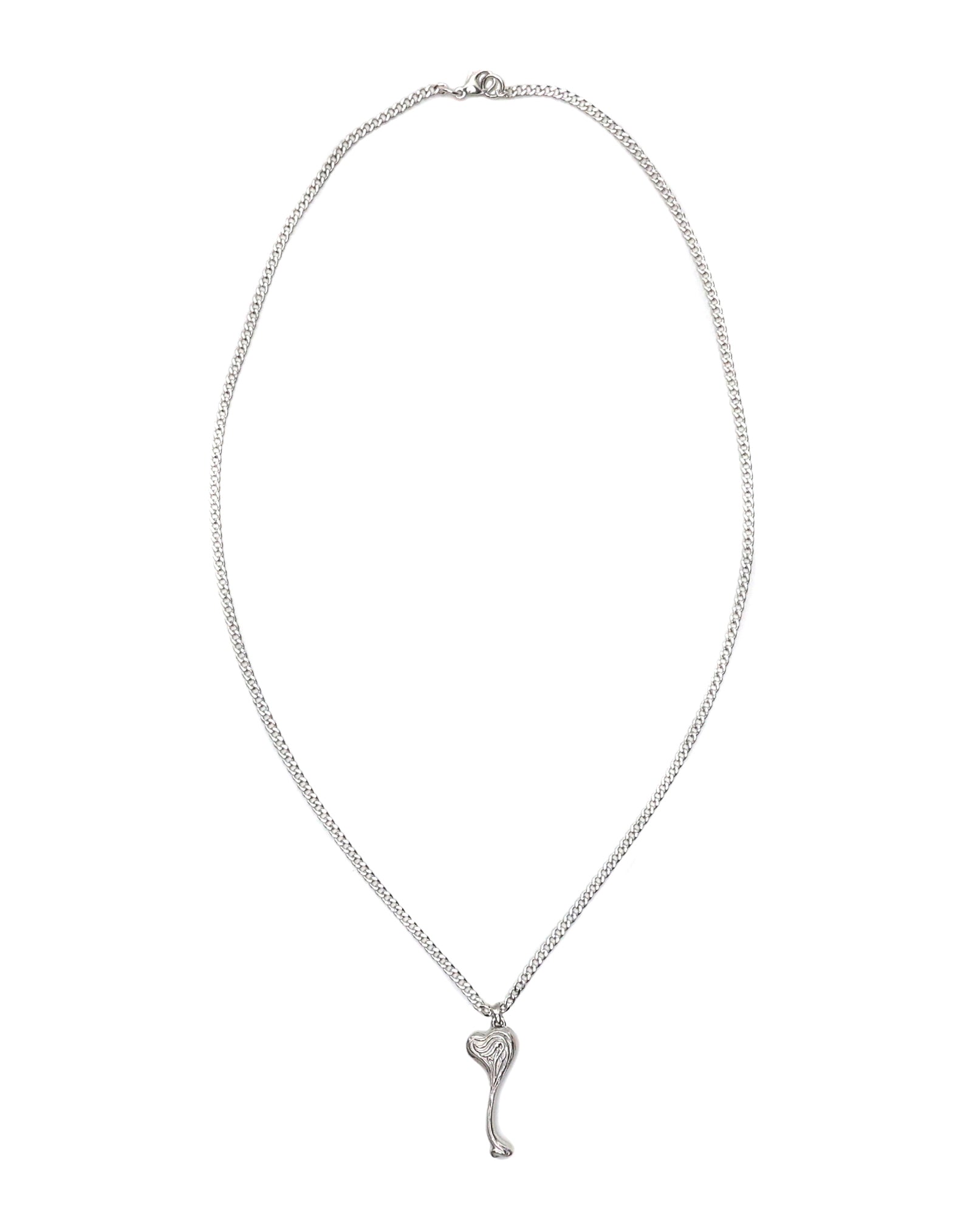 The pendant features an organically shaped heart form, subtle and sculptural rather than symbolic. Its fluid contours reference the natural forms and quiet motion explored throughout the WHIPLASH collection, translating landscape-driven inspiration into a wearable object.