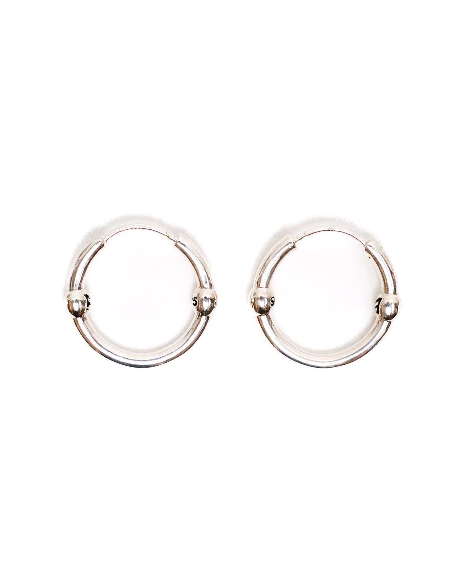 The Finner Hoops are larger hoop earrings that feature two polished balls.