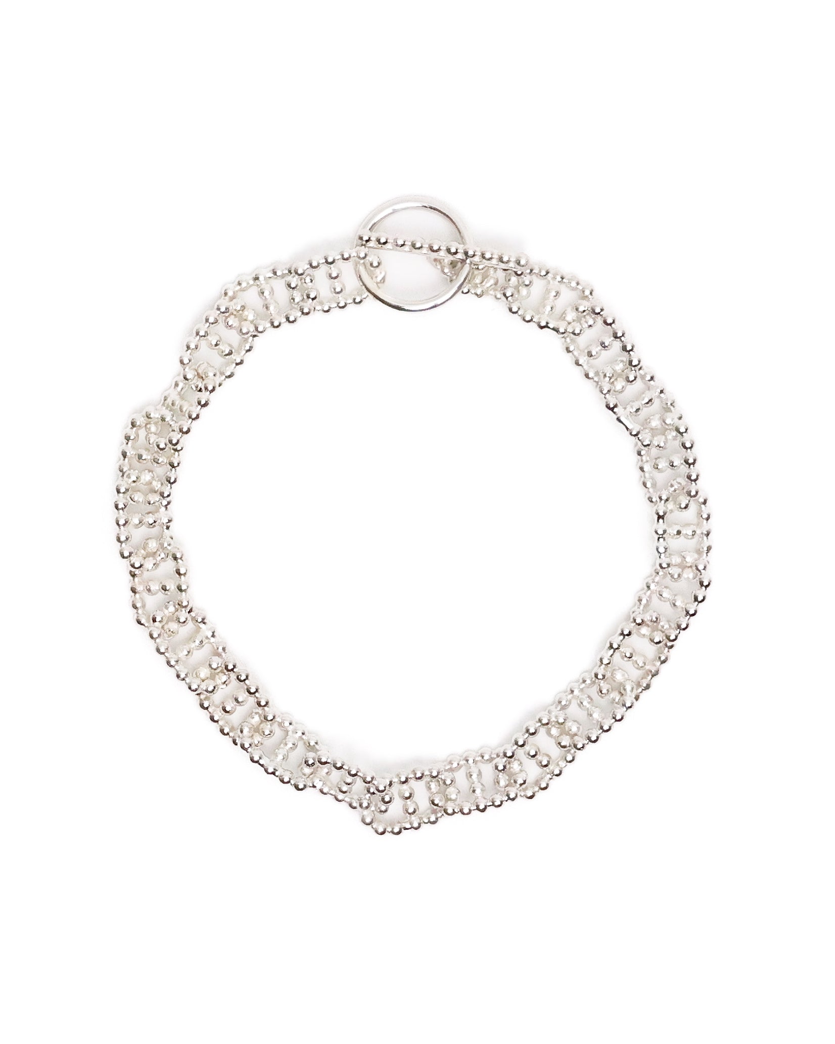 Drawing from the structure of our Chain Link Bracelet, this piece reinterprets the design with a beaded chain for a refined and delicate look. Crafted from Silver 925 and finished with a MAPLE toggle clasp.