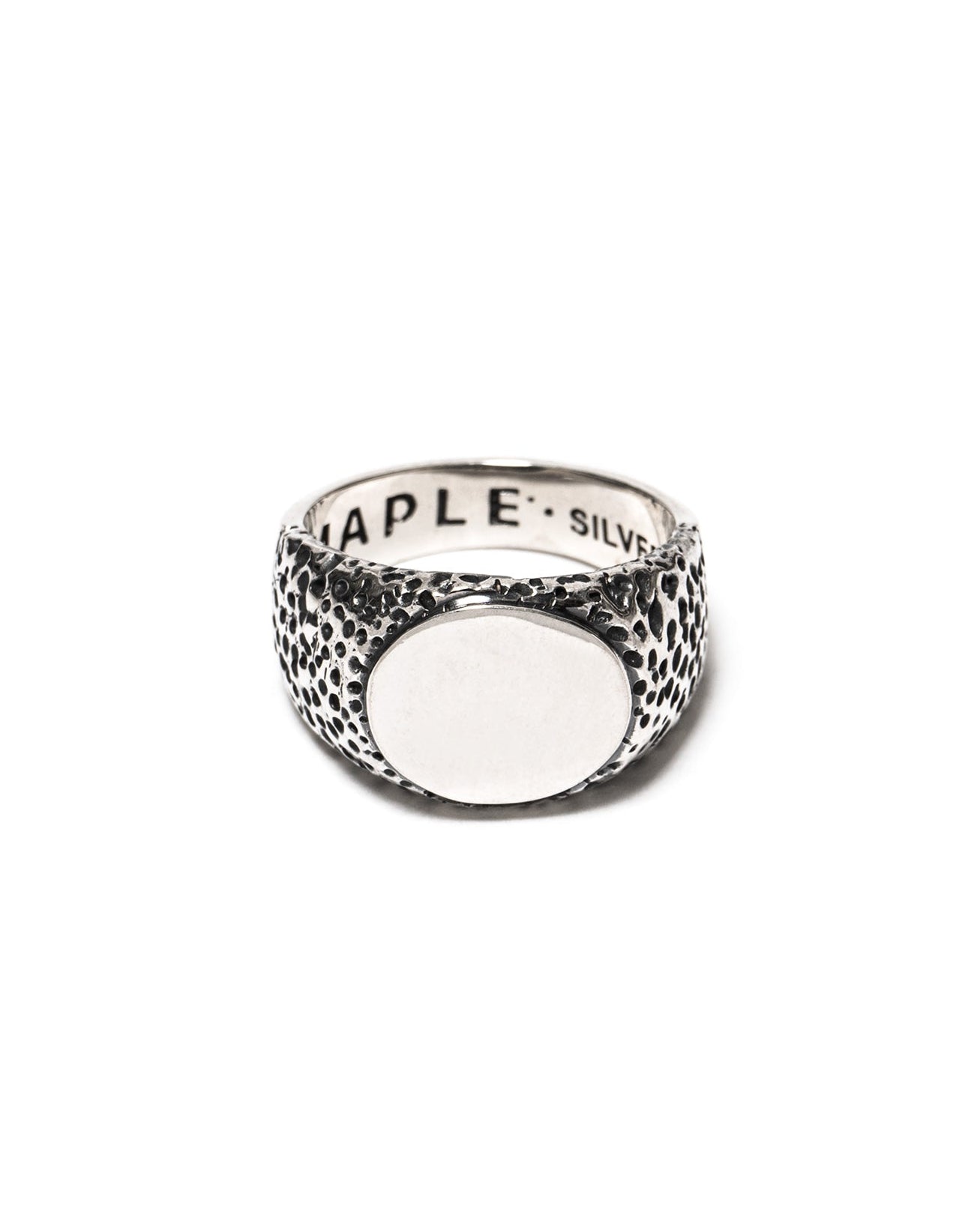 Our take on a 1970’s style Nugget ring. Flat oval face with textured sides. Produced in Silver .925 with MAPLE logo inside.