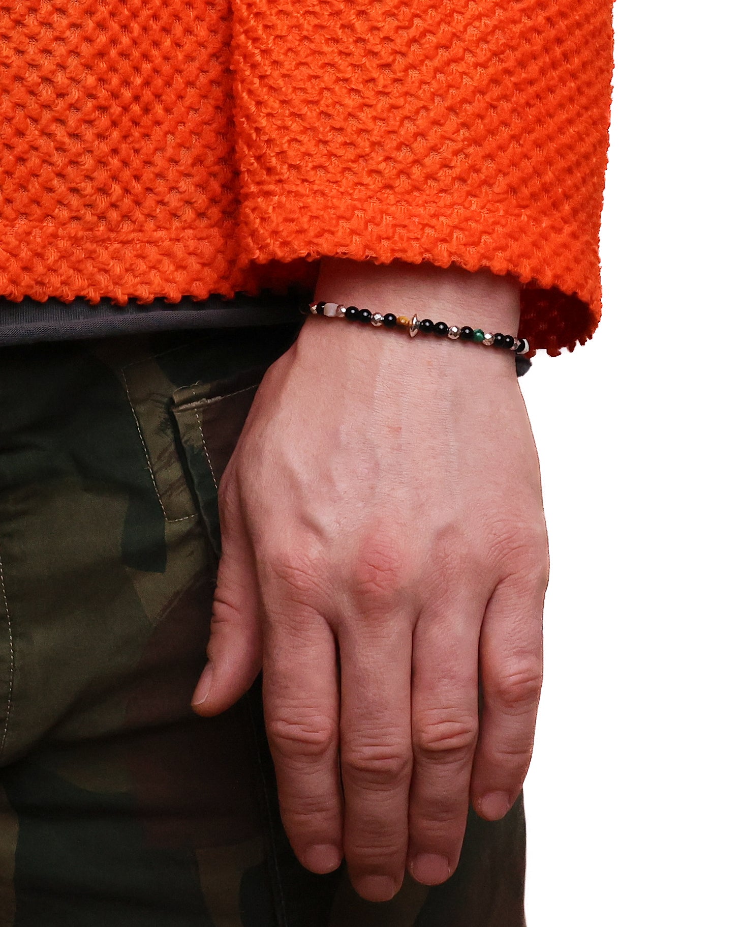 Returning to our origins, the Medina Bracelet is hand-beaded with a composition that feels structured yet organic. A mix of colours, shapes, and sizes gives each strand its own character, while variations in the stones mean no two pieces are exactly alike.